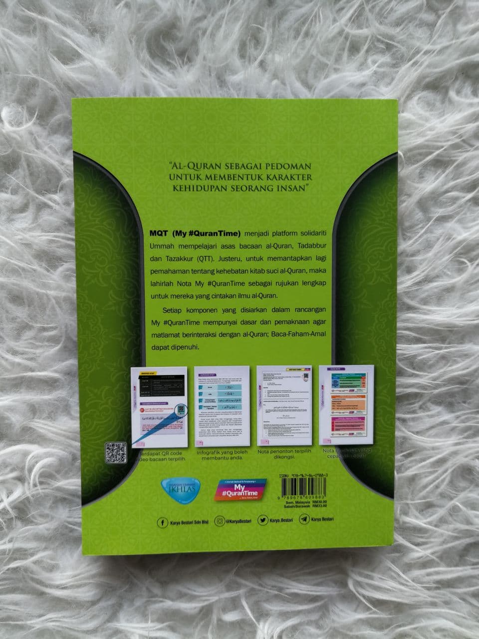 Sejajar dengan tujuan program My#QuranTime yang disiarkan di TV ALHIJRAH Iaitu mahu menjadi platform solidariti ummah mempelajari asas bacaan al-Quran, Tadabbur dan Tazakkur, maka lahirlah naskhah lengkap: NOTA MY #QURANTIME sebagai panduan lengkap buat mereka yang cintakan al-Quran.